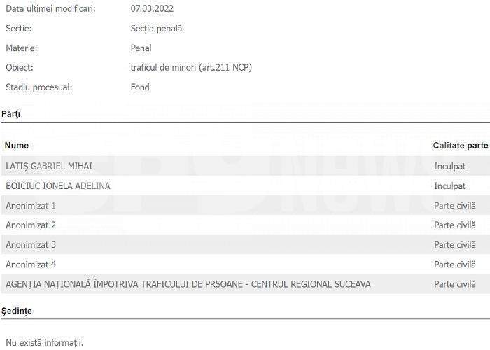 Jandarmul acuzat de trafic de minori și proxenetism - fetele respective trecând și prin paturile unor „oameni ai legii” din cadrul IPJ Suceava și Jandarmeria Suceava - și-a luat lălpășița din țară, chiar înainte ca dosarul său să fie trimis la instanță. În mod bizar, în dosarul trimis în instanță nu apar numele polițiștilor și jandarmilor care au făcut sex cu minorele.